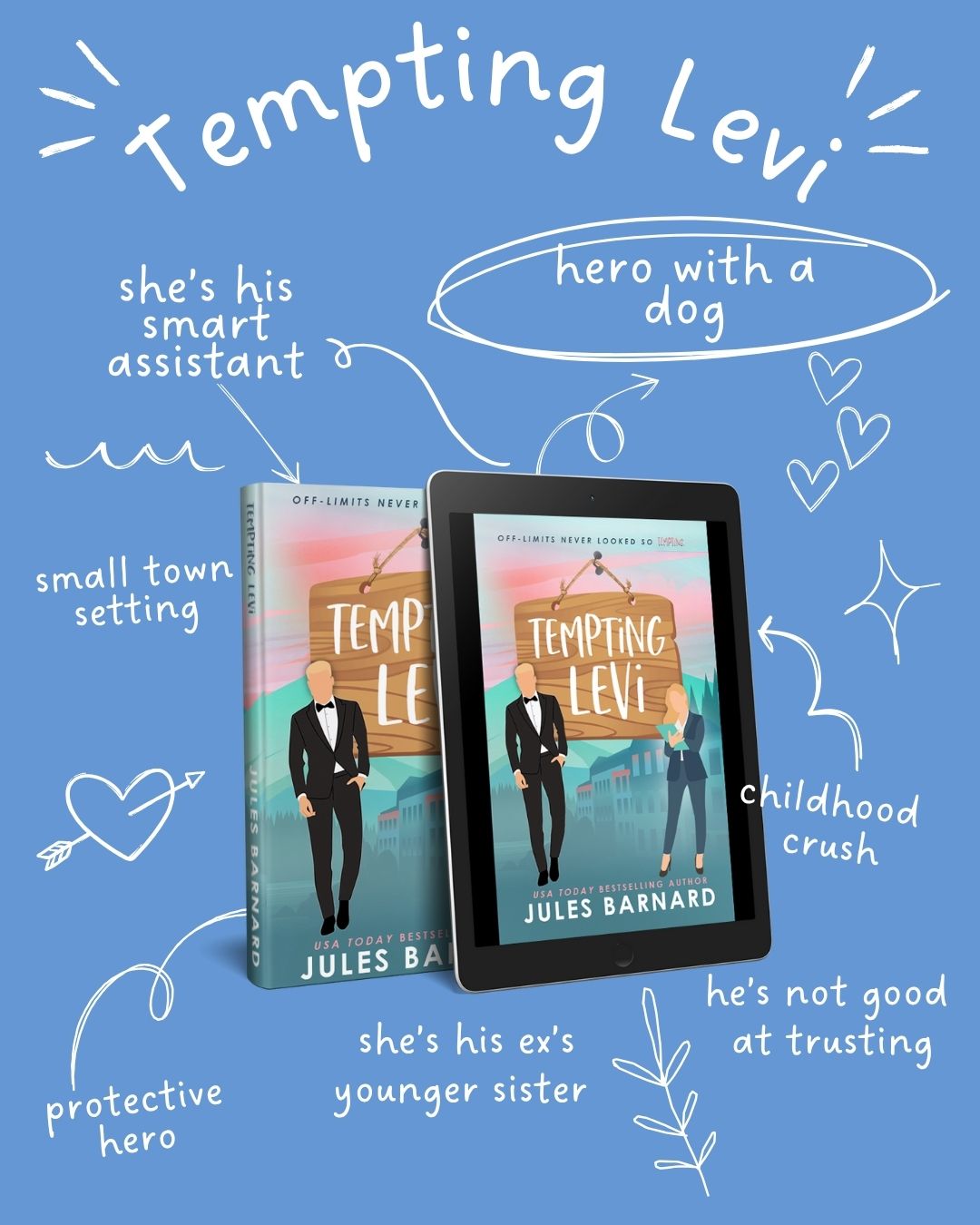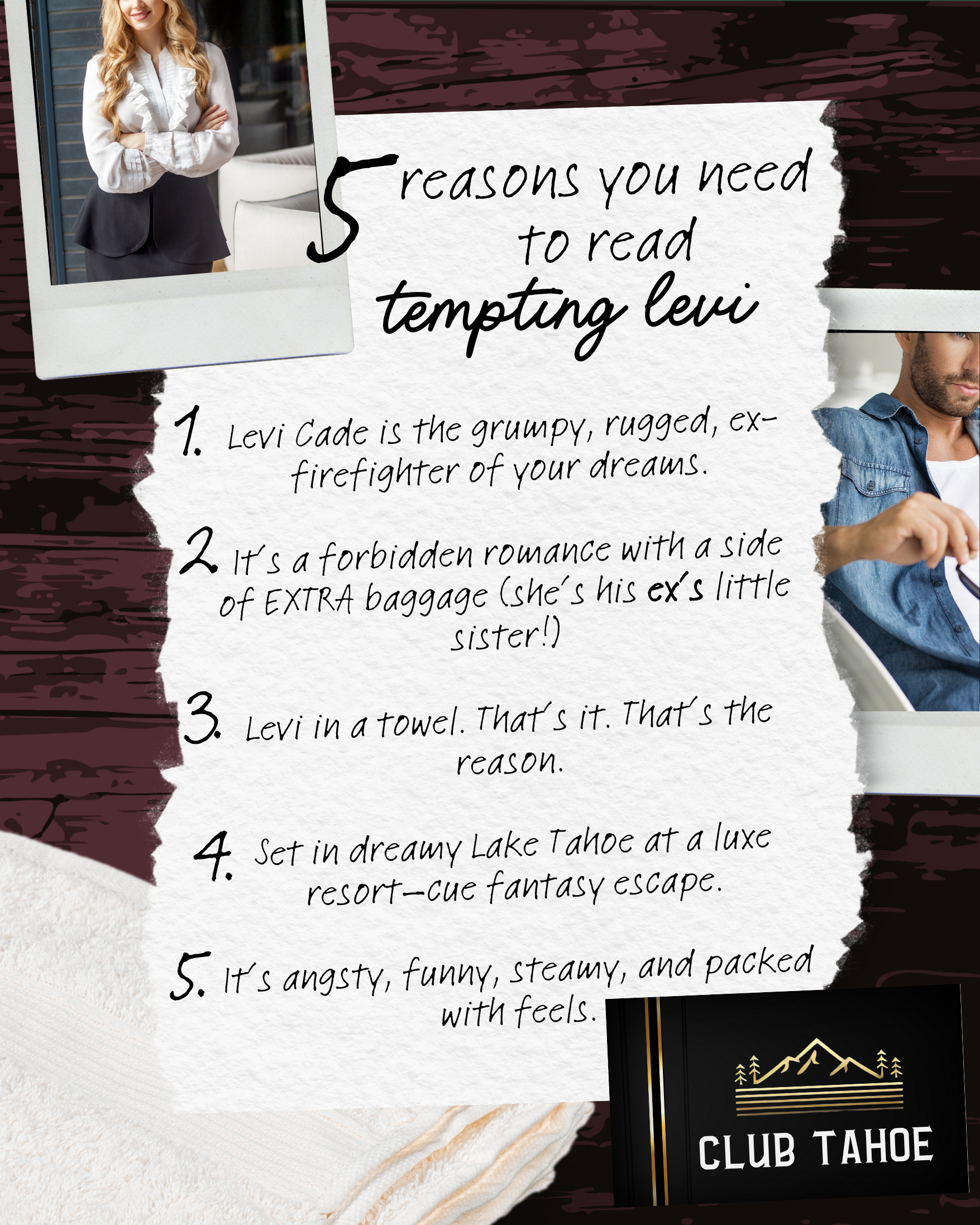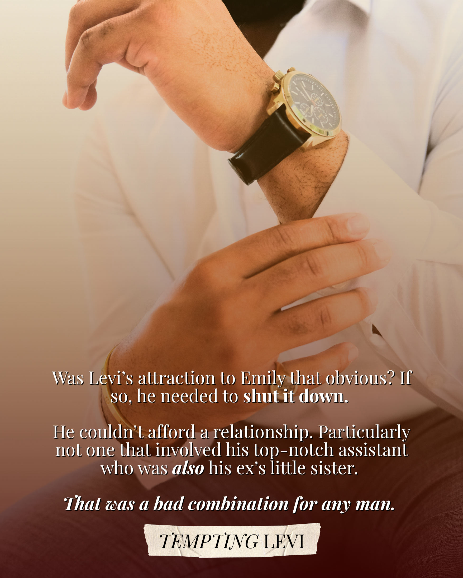 Tempting Levi: Resort owner Levi Cade thinks he’s found the perfect assistant in gorgeous Emily. There’s just one complication: She’s his cheating ex’s little sister.