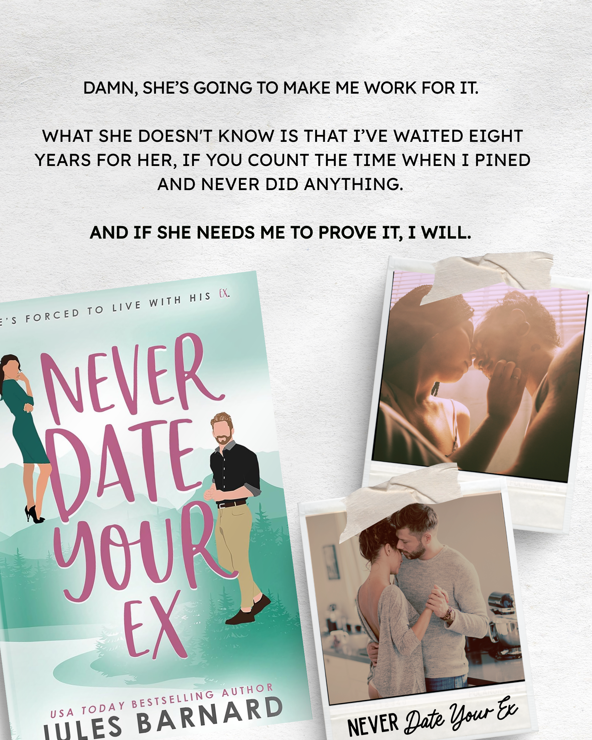 ⭐⭐⭐⭐⭐ “Jules Barnard writes an emotionally driven story with romance, heartbreak and family hardships.” ~ Review of Never Date Your Ex